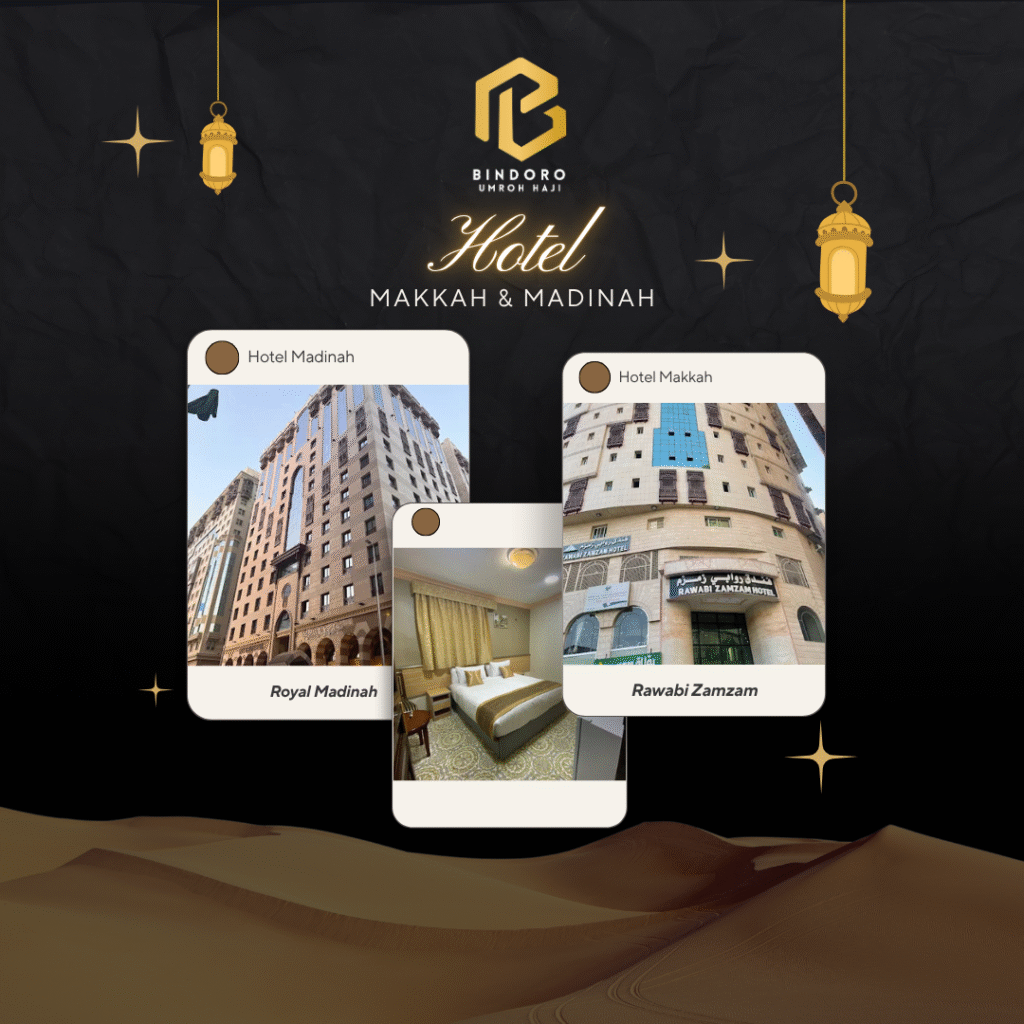 Hotel Madinah: Royal Madinah (Kenyamanan dekat Masjid Nabawi) Hotel Makkah: Rawabi Zamzam (Memudahkan akses ke Masjidil Haram)